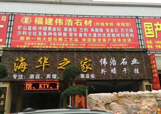 發(fā)布信息: 南安水頭偉浩石材(專注外墻 主營:電解黃金鉆 巴蘭珠。 寶金石。承德綠。紫金鉆。黑蝴蝶。 黃室啡。 金鉆麻。蘭豹。 莎麗士紅。 蝴蝶綠。新卡麥。紅鉆。木馬麗。 巴西維納金。 伊朗藍(lán)眼睛。 歡迎新老客戶前來洽談 qq978742559。 聯(lián)系電話 15060489991。 15260824789。 工廠地址:水頭樸里東大路 裕洲實業(yè)公司3號門