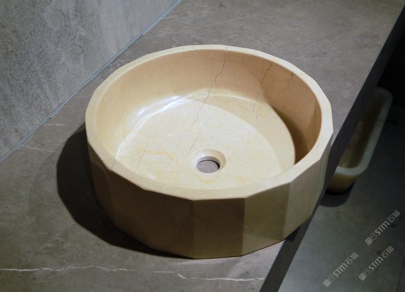 金線米黃洗手盆臺(tái)面盆柱盆洗衣池石材衛(wèi)浴石材擺件托盤