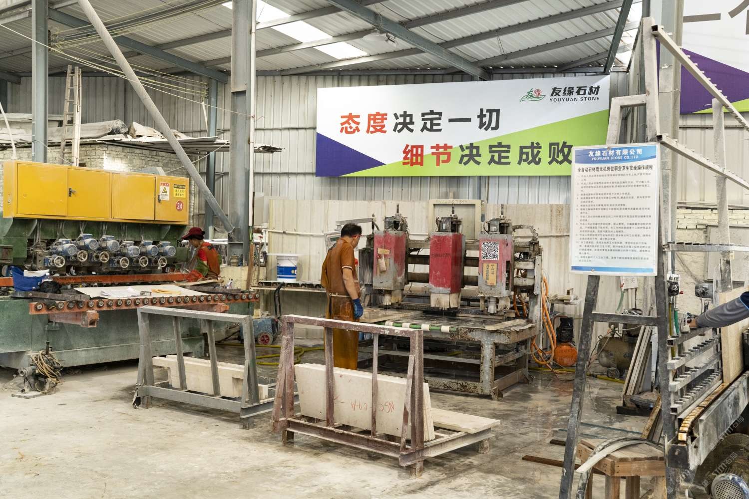 發(fā)布信息: 友緣石材成立于1998年至今。是一家集石材礦山開采、加工批發(fā)、工程設(shè)計(jì)、安裝施工、售后服務(wù)為一體的石材企業(yè),承接各類石材裝飾工程及加工各種異型工藝石材。 友緣石材精品加工中心、精品倉儲中心位于江蘇省南通市洋口港石材產(chǎn)業(yè)園區(qū),占地面積約28000平方米,生產(chǎn)中心集石材荒料加工,精品大板拋光,工程異形石材加工等一體化生產(chǎn)功能,具有國內(nèi)外先進(jìn)加工設(shè)備,如鉆石切割機(jī)、單邊鋸切割機(jī)、繩鋸切割機(jī)、全自動板材拋光機(jī)、真空烘干流水線設(shè)備、紅外線切割機(jī)、全自動化線條機(jī)、磨邊機(jī)、水刀切割機(jī)、仿形機(jī)等等,具備先進(jìn)的加工能力和豐富的施工經(jīng)驗(yàn)。