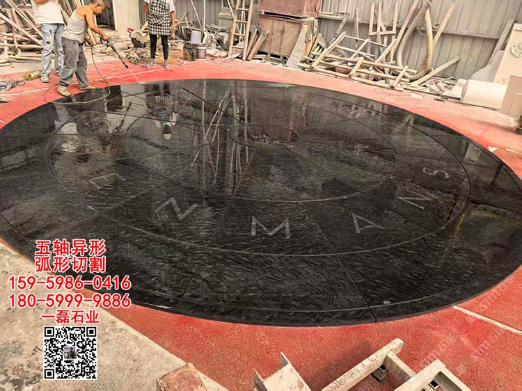 范思哲黑水池水景工程石材廣場圍圓宇宙黑鉑金鉆大理石