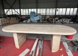 超白洞石桌子 大理石長桌奢石餐桌茶幾邊幾石材家具
