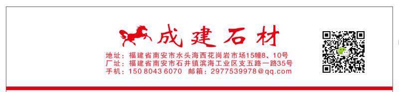 成建石材有限公司主營產(chǎn)品:豹皮花,中國紅,中國綠,藍豹1,四川黑(火燒面),冰花蘭1,新蒙古黑,四川黑(荔枝面),迪奧咖灰,美國白金企業(yè)地址:福建南安水頭鎮(zhèn)海西石材城花崗巖精品區(qū)進門走30米15棟8-10號