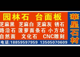 華星石業(yè)主營產(chǎn)品:G654(自然面),G655 (1),長泰G655,芝麻黑654(火燒面),芝麻灰(江西),芝麻灰2,芝麻灰655(火燒面),芝麻白,G684,漳浦紅G648,天鵝白,印尼砂巖(光面),芝麻白G623企業(yè)地址:福建南安南安市濱海大道109-5