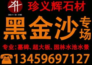 泉州珍義輝石材有限公司主營(yíng)產(chǎn)品:黑金沙,黑金沙(中花),黑金沙(反切大板面),黑金沙(中細(xì)花),黑金沙(仿石磚),國(guó)產(chǎn)黑金沙,安哥拉黑,黑水晶,墓碑半成品,盲人石/導(dǎo)盲石,景觀石(刻字石),水景企業(yè)地址:福建南安水頭鎮(zhèn)閩南建材市場(chǎng)珍義輝石材