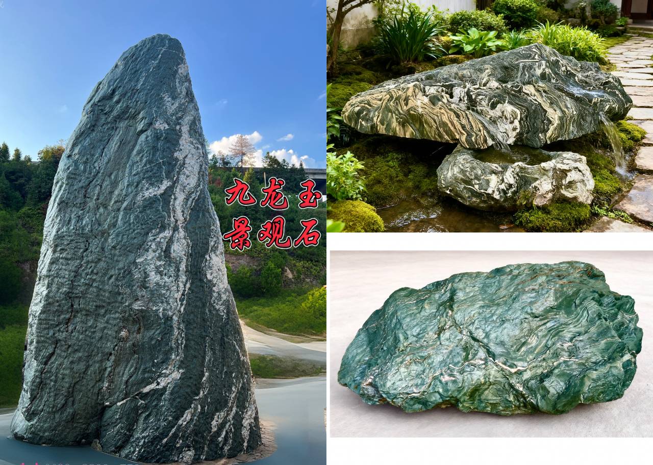 描述:九龍玉景觀石是一種極具特色的天然石材,主要產(chǎn)于江西省吉安市永豐縣的盤龍山脈。九龍玉景觀石常被賦予吉祥、富貴的象征意義,其獨特的紋理和形態(tài)仿佛群龍歡騰,蘊含著深厚的文化底蘊,為園林景觀增添了藝術(shù)氣息。產(chǎn)品種類繁多,包括景觀石、切片石、石桌椅、汀步石等、洗手盆,廣泛應(yīng)用于廣場、公園、別墅庭院、市政工程等場所,也可用于室內(nèi)外墻面裝飾、背景墻等。